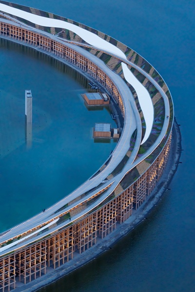 ❹大阪・関西万博 大屋根リング。世界最大の木造建築物で全周約2km。「多様でありながら、ひとつ」という万博の会場デザインの理念を表現した円環状のシンボル建築。(写真/Iwan Baan)