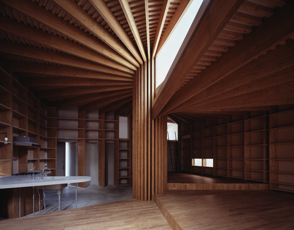 ❹Tree House。穏やかな丘陵地に計画された住宅。大きな樹のような環境形成を目指し、大黒柱を中心に32本の門型フレームを螺旋状に配置。(写真/Ken’ichi Suzuki)